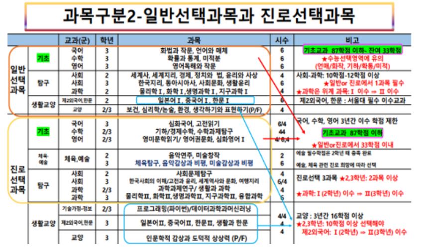 📌 과목 선택이 대학 입시에 직접적인 영향을 미치므로, 목표 대학의 권장 과목을 사전에 확인하는 것이 중요합니다.