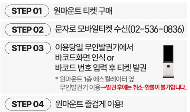 티켓 구매 ➡ 네이버 'MY예약' 내 바코드번호 확인 ➡ 현장 무인발권기에서 바코드번호 입력 후 발권