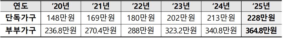 ✔ 2025년, 소득인정액 기준은 아래와 같습니다.
