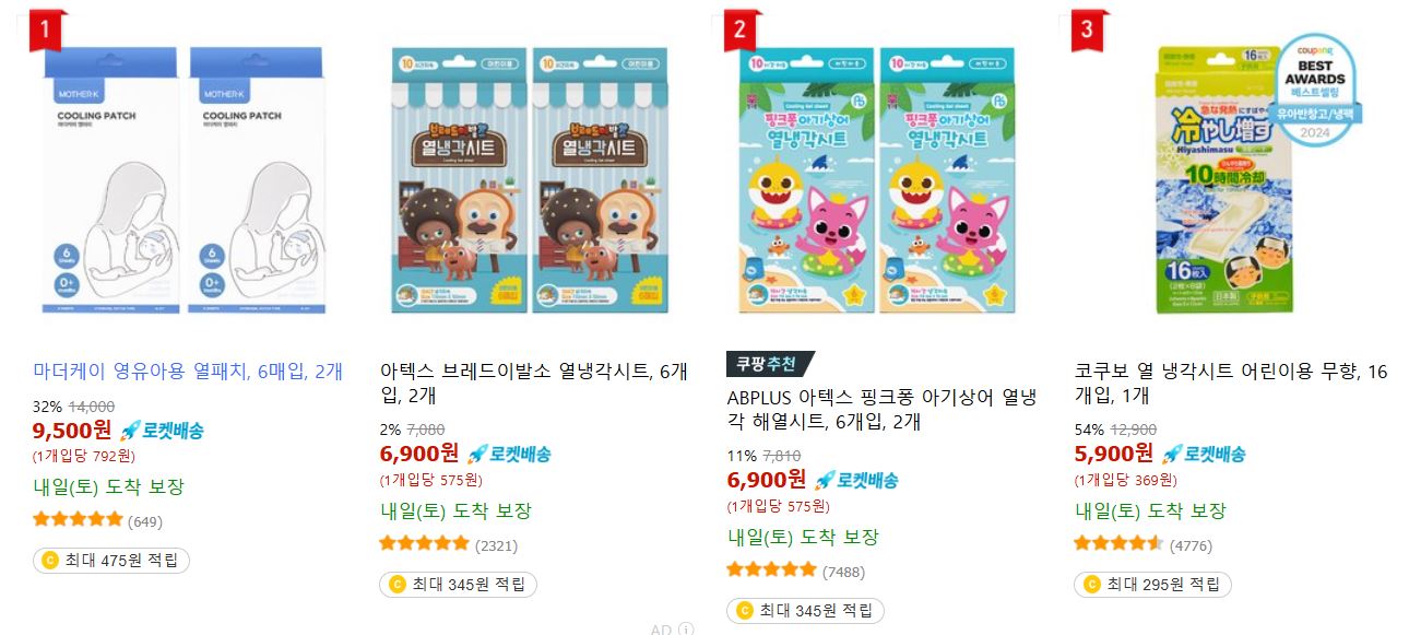 열패치 냉각시트는 일시적으로 체온을 낮춰주는 역할을 하는데요, 보통 목 뒤나 겨드랑이에 붙이는 용도로 많이 구매하시는 편입니다. 미리 구비해두신다면 도움이 될거예요. 다만 피부자극이 발생한다면 즉시 중단하세요~