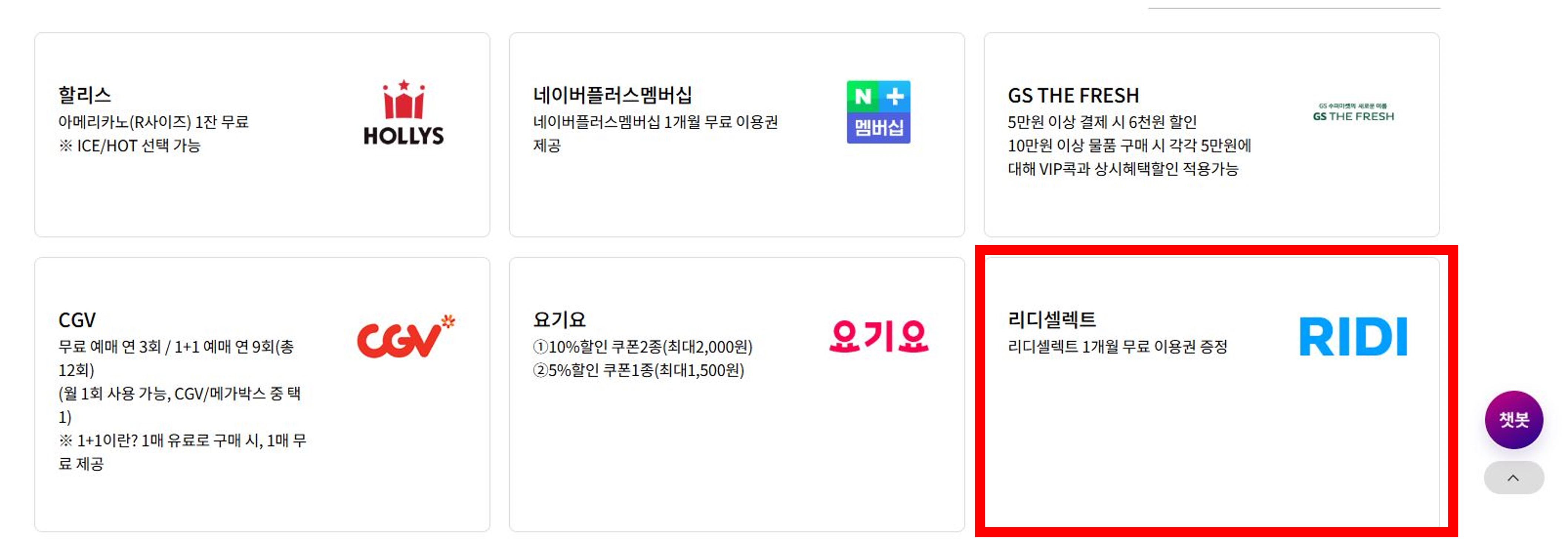 ✔ STEP 2: 리디셀렉트 혜택 선택 및 쿠폰 받기