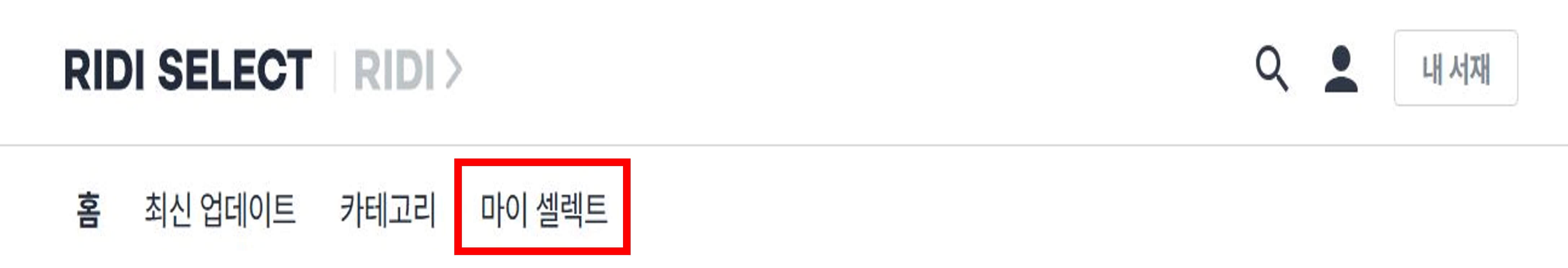 💠 리디셀렉트 검색해서 홈페이지에 입장해 주세요. 로그인을 해주시고, 상단에 마이셀렉트를 눌러주세요