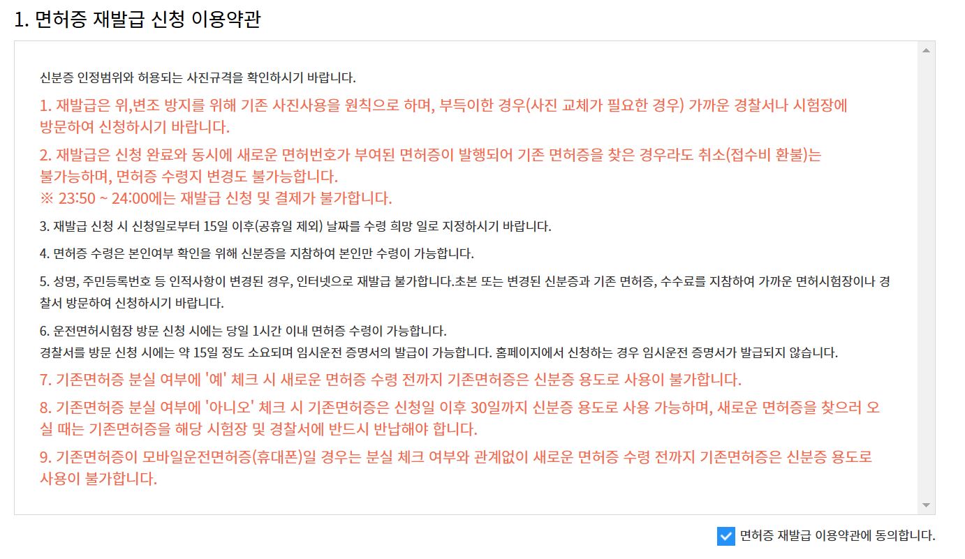 - 경찰서 또는 운전면허시험장 방문 신청 시 가능
